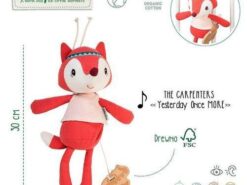 Przytulanka z pozytywką Lisiczka Alice belgijskiej marki Lilliputiens to wspaniały pierwszy przyjaciel maluszka. Jest idealny do tulenia, uspokajania i usypiania. Ma postać uroczej rudej Lisiczki Alice, aż 30 cm wysokości i drewniany saksofon, który stanowi jednocześnie uchwyt ukrytej wewnątrz pozytywki. Pociągniecie za instrument, uaktywnia znaną, przyjemną dla ucha melodię utworu „Yesterday once more” , śpiewanego m. in. przez zespół Carpenters. Muzykująca Alice nosi jasny top i indiańską opaskę, została uszyta z delikatnej bawełny organicznej, ma długi ogon i sterczące uszka. Zabawka jest solidnie wykonana i bezpieczna. Wyposażona w troczki, które umożliwiają jej powieszenie przy łóżeczku czy wózku dziecka. Zaskakuje i pobudza dziecięcą wyobraźnię. Aktywizuje zmysł słuchu, pomaga w zasypianiu i wyciszaniu się.