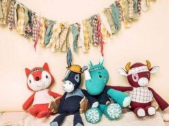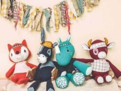 materiał: bawełna organiczna, wypełnienie: poliester GRS, drewno FSC
