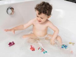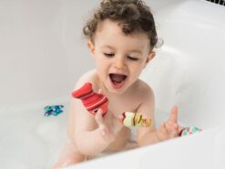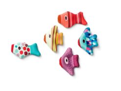 Wykonane zostały z miękkiego, łatwego do czyszczenia i szybkoschnącego neoprenu. Zestaw składa się z 5 bajecznie kolorowych rybek w fantastyczne wzory, które pobudzają dziecięcą ciekawość.