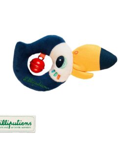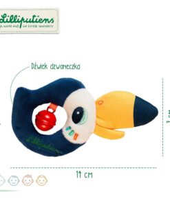 Pluszowa mini grzechotka z dzwoneczkiem z kolekcji Tukan Pablo to niebanalna aktywizująca zabawka dla niemowląt.