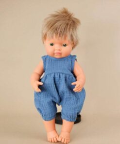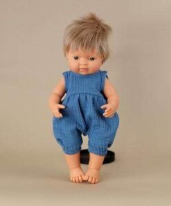 Lillitoy – ogrodniczki z muślinu – niebieskie – 38 cm