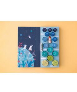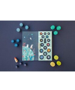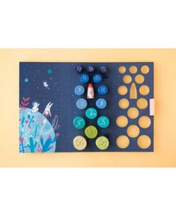 W zestawie znajduje się 16 kolorowych krążków, które utworzą kształt rakiety.
