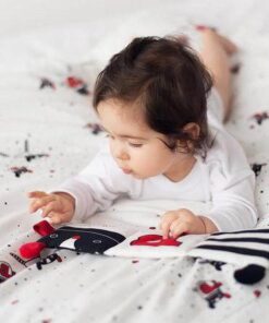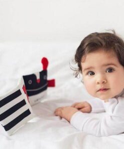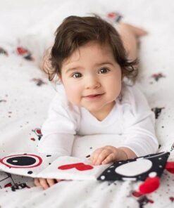 Kontrastowa książeczka dla najmłodszych dzieci wykonana z 100% bawełny. Szczególnie polecana niemowlętom w pierwszym półroczu życia. Malutka, poręczna, łatwa do prania, idealnie sprawdzi się podczas pierwszych zabaw z dzieckiem. Specjalnie zaprojektowane wzory, waga oraz długość książeczki, odpowiadają możliwością motorycznych i potrzebom rozwojowym niemowląt.
