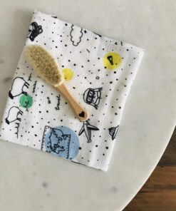 Muślinowa myjka ok 40×40 cm. 60% wiskoza z bambusa 40% bawełna. Myjka dostępna w różnych wzorach. Istnieje możliwość dokupienia otulacza oraz poduszki w pasujące wzory. Surowce, z których wykonano produkt posiadają najwyższy certyfikat Oeko-Tex standard 100, gwarantujący bezpieczeństwo używania produktu przez niemowlęta. Myjkę należy prać w pralce w temperaturze 40 stopni.