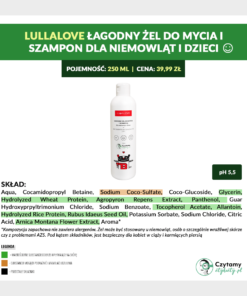 Pachnący malinami, gęsty żel do mycia ciała i włosów dla niemowląt, dzieci i dorosłych. Doskonale sprawdzi się w codziennej pielęgnacji wrażliwej skóry i włosów. U osób dorosłych polecany szczególnie do mycia twarzy. Żel pachnie malinami. Jest bardzo wydajny w użyciu. W składzie znajdziesz typowo polskie rośliny jak arnikę górską, perz, zboże czy maliny.