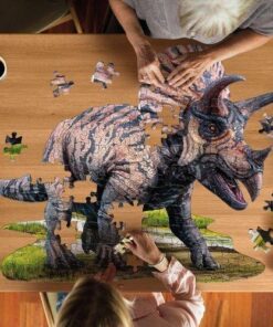 To wspaniała zabawa, a jednocześnie doskonała nauka dla miłośników zwierząt. Do zestawu dołączono broszurę w języku angielskim, która zawiera ciekawostki na temat Triceratopsa. Świetna zabawa dla całej rodziny. To wyjątkowe puzzle dla dzieci w kształcie zwierzątek dla dzieci, rekomendowane dla dzieci w wieku od 5 lat. Elementy układanki mają duży rozmiar, aby ułatwić ułożenie puzzli młodszym dzieciom. Ponadto zestaw został wyposażony obraz zwierzątka jako punkt odniesienia.