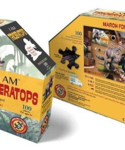 Puzzle Puzzle Puzzle I AM TRICERATOPS – to zestaw składający się z 100 elementów. Prawdziwe wyzwanie dla wszystkich miłośników puzzli. Po ułożeniu układanka ma rozmiar plakatu.
