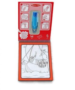 Kolorowanka do wielokrotnego malowania. Bez bałaganu. Wszystko czego potrzebujesz to woda. Wystarczy napełnić pędzelek wodą i można malować. Wygodne w podróży. Sczepione kartki nie rozsypią się ani nie zgubią.