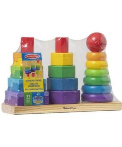 Marka Melissa & Doug oferuje ponad 2000 zabawek dla dzieci w różnym wieku. Są to przede wszystkim: najwyższej jakości drewniane zabawki – np. domek dla lalek, produkty do prac ręcznych i artystycznych – np. klocki do nawlekania, a także rozwijające dziecięcą kreatywność puzzle i układanki. Produkt Wieże geometryczne – trzy w jednym wyprodukowany przez firmę Melissa & Doug powstał w myśl jednej ważnej zasady, a mianowicie ma angażować dzieci w taki sposób, by przez zabawę uczyły się nowych rzeczy. Ponadto, misją Melissa & Doug jest również sprawienie, by maluchy jak najmniej czasu spędzały przed ekranem telewizora lub komputera. Nauka przez zabawę? Z zabawkami Melissa & Doug jest to możliwe!
