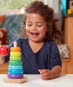 Klasyczna zabawka z dzieciństwa! Wszystkie kolory tęczy są reprezentowane przez osiem gładkich, łatwych do uchwycenia drewnianych elementów. Ułóż je na podstawie z litego drewna, zaprojektowanej tak, aby zapewnić bezpieczną i intrygującą zabawę. Niesamowita wartość i doskonałe wykonanie sprawiają, że ten przedmiot jest bestsellerem i ulubieńcem dzieci! Jaskrawo kolorowe, gładko wyszlifowane elementy pomagają zbudować wczesne umiejętności rozróżniania kształtu, koloru i rozmiaru. Zawiera osiem gładkich, łatwych do chwycenia w małą rączkę drewnianych kawałków, które można ułożyć na kołyszącej się podstawie z litego drewna. Klasyczna zabawka, którą powinno mieć każde dziecko.