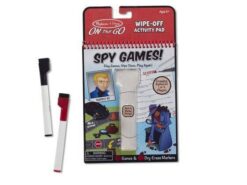 Zabierz ze sobą na drogę zestaw gier obrazkowych, liczbowych i słownych – wielokrotnego użytku. Gry dla jednej osoby lub dwóch. Idealne wyzwania dla małych szpiegów! Zestaw zawiera plansze do gier oraz zmywalne markery. Waga: 0,2 Wymiary: 25×16 cm Wiek: 6 lat