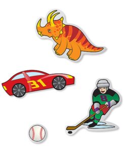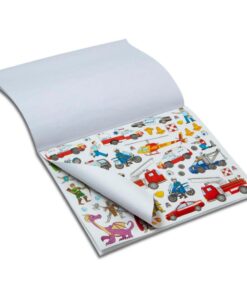 - zestaw zawiera: 500 sztuk naklejek podzielonych na 10 plansz tematycznych (dinozaury, budowa – w zestawie maszyny budowlane, robotnicy, materiały, znaki, pojazdy wyścigowe – samochody i motocykle, kosmos – w zestawie rakiety, planety i oczywiście ufoludki, dzikie zwierzęta, piraci, sport, pojazdy specjalne – karetki, policja, straż pożarna, rycerze, owady i węże)