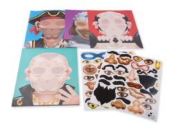 - zestaw zawiera: 20 papierowych plansz z różnymi twarzami do ozdobienia, 160 naklejek z oczami, ustami, nosami, włosami i innymi elementami do tworzenia różnych postaci