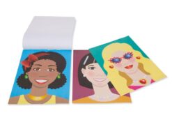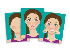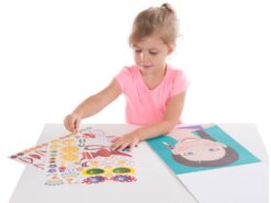 - zestaw zawiera: 20 papierowych plansz z różnymi twarzami do ozdobienia, 250 naklejek z oczami, ustami, nosami, brwiami i biżuterią do tworzenia różnych postaci