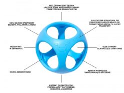 - zabawka wykonana z wysokiej jakości, wytrzymałego silikonu spożywczego, nie zawiera BPA, Ftalanów, Ołowiu ani Latexu