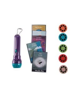 Zanurz się w 5 różnych historyjkach dzięki flagowemu produktowi Moulin Roty. Łatwo to działa : włóż historyjkę do lampki, włącz, a obrazy wyświetlą się na ścianie lub suficie. Zestaw zaiera również karty z zaproszeniem na występy w formie mini-kopert z tajnymi wiadomościami.