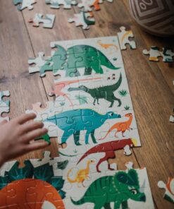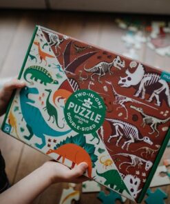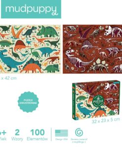 Następnym razem dziecko może zacząć układanie właśnie od niej. Jedna strona puzzli przedstawia wiele gatunków dinozaurów na jasnym tle, druga – ich niezwykłe szkielety na tle brązowym. Niebanalny design i piękne kolory dodatkowo zachęcają do zabawy. Taka układanka to również świetny sposób na pierwsze lekcje botaniki i poznanie ciekawych gatunków stworzeń.