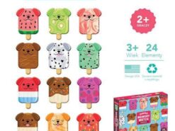 Gra Memory Pieskolody amerykańskiej marki MUDPUPPY składa się 12 par kartonowych lodów na patyku w kształcie sympatycznych psich mordek, które należy skompletować. Parę tworzą dwa identyczne lody. Mają one przyjemne dla oka kolory, odtwarzające różne smaki i posypki, typowe dla lodowych deserów. Wykonane zostały z solidnego materiału, pochodzącego z recyklingu. Gra memory to wspaniała zabawa, zarówno dla dzieci, jak i dorosłych. Przeznaczona jest dla co najmniej dwóch osób. Ćwiczy pamięć, uczy cierpliwości i skupienia. Zapakowana jest w estetyczne pudełko. Idealnie nadaje się na prezent.