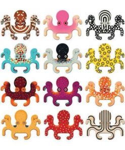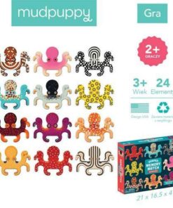 Gra Memory Ośmiornice amerykańskiej marki MUDPUPPY składa się 12 par bardzo kolorowych, kartonowych ośmiornic, które należy skompletować. Parę tworzą dwa identyczne stworzenia. Mają one przyjemne dla oka kolory i różnorodne wzory (kropki, ciapki, paski i wiele innych). Wykonane zostały z solidnego materiału, pochodzącego z recyklingu. Gra memory to wspaniała zabawa, zarówno dla dzieci, jak i dorosłych. Przeznaczona jest dla co najmniej dwóch osób. Ćwiczy pamięć, uczy cierpliwości i skupienia. Zapakowana jest w estetyczne pudełko. Idealnie nadaje się na prezent.