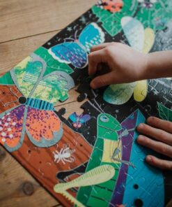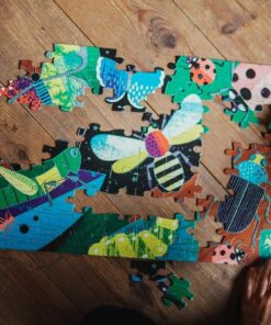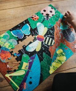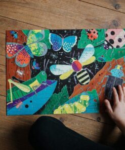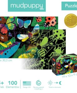 Układanka składa się ze 100 elementów, po ułożeniu przedstawiających owady: motyle, biedronki, świerszcza, pszczołę, żuka i dżdżownicę. To jednak nie wszystko. Kiedy robi się ciemno zarówno bohaterowie, jak i otaczający je krajobraz… świecą!