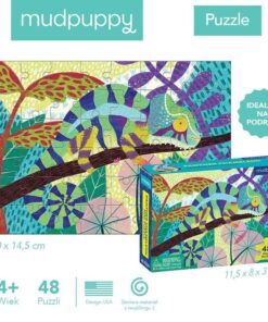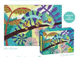 Zestaw puzzli mini Kameleon lamparci składa się z 48 niewielkich, poręcznych elementów, z których powstaje obrazek o wymiarach 20 x 14,5 cm.
