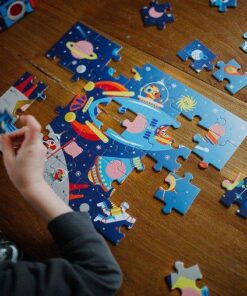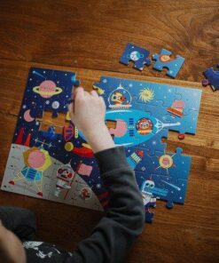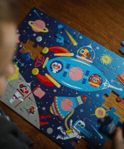 Układanka składa się z 42 elementów, po ułożeniu przedstawiających planetę, zwierzęta-kosmonautów, pojazdy kosmiczne i ciała niebieskie.. To jednak jeszcze nie wszystko!