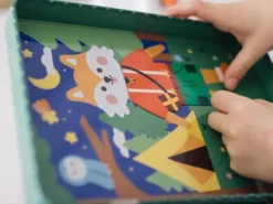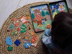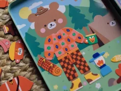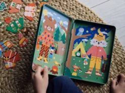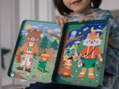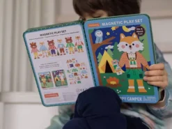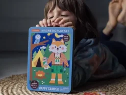Zestaw magnesów Wesoły Biwak MUDPUPPY to kreatywna zabawka dla dzieci od 4. roku życia. Zawiera dwie magnetyczne karty, na których umieścić można ponad 45 magnesów, tworząc turystyczne stylizacje dla postaci: liska i niedźwiadka. Zestaw zapakowany jest w estetyczne, metalowe pudełko.
