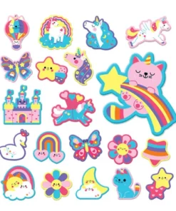 - 20 oryginalnych kształtów, takich jak kwiaty, gwiazdki, księżyc, zamek, motyl, kotek w balonie i kotorożec z kometą