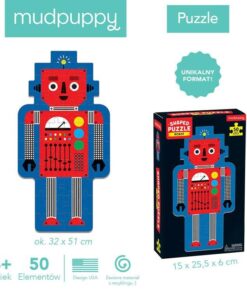 Puzzle konturowe Robot amerykańskiej marki MUDPUPPY nadają układaniu puzzli nowy wymiar – na samym złożeniu obrazka zabawa się bowiem nie kończy. Układanka składa się z 50 elementów, które po złożeniu przedstawiają zabawnego czerwonego robota, i co więcej – ma także jego kształt! Projekt powstał w studiu The Indigo Bunting, należącym do nowojorskiej designerki Erin Jang. Puzzle te to niebanalny pomysł na rodzinną rozrywkę. Zaciekawią i zachwycą wszystkich. Zapakowane są w estetyczne pudełko. Idealnie nadają się na prezent.