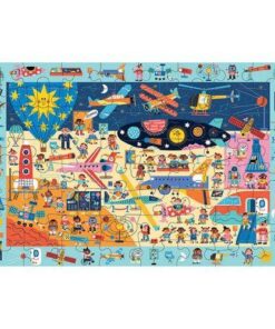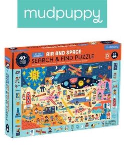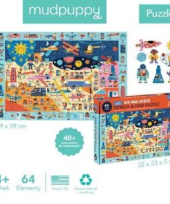 Puzzle obserwacyjne Muzeum Lotnictwa i Kosmosu amerykańskiej marki MUDPUPPY nadają układaniu nowy wymiar – na samym złożeniu obrazka zabawa się bowiem nie kończy. Układanka o wymiarach 59×39 cm składa się z 64 elementów. Po ułożeniu przedstawia salę w wyjątkowym muzeum, gdzie eksponatami są m.in. latające i kosmiczne pojazdy czy narzędzia badawcze do eksplorowania pozaziemskiej przestrzeni. To jednak nie wszystko! Na kontrastowym pasku wokół ilustracji znajdują się rysunki ponad 40 różnych przedmiotów i osób, które należy odszukać na obrazku, m.in. lunety, komety, astronauty, gabloty ze skałami, dziewczynki na wózku czy chłopca z samolotem, co dodatkowo uatrakcyjnia układanie i trenuje spostrzegawczość. Autorką ilustracji jest hiszpańska artystka, miłośniczka książek i pieszych wędrówek – Teresa Bellon. Wyjątkowy design puzzli i przyjazne barwy dodatkowo zachęcają do zabawy. Zapakowane są w estetyczne pudełko. Idealnie nadają się na prezent.