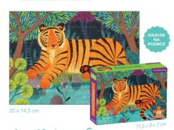 Zestaw puzzli mini Tygrys bengalski składa się z 48 niewielkich, poręcznych elementów, z których powstaje obrazek o wymiarach 20 x 14,5 cm.