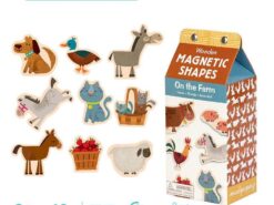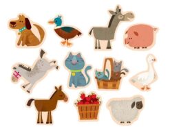 Zestaw drewnianych magnesów Na farmie amerykańskiej marki MUDPUPPY to godziny wspaniałej zabawy w poznawanie zwierząt hodowlanych i życia na wsi oraz ozdabianie wybranych magnetycznych lub metalowych powierzchni. Zestaw zawiera 40 kolorowych magnesów z drewna, które przedstawiają m. in. farmera, traktor, siano cy koguta. Projekt stworzyła grupa grafików, znana jako Barn Eyes™. Zestaw zapakowany jest w pudełko, które przypomina kształtem karton mleka. Jest ono zapinane na zatrzask, oryginalne i estetycznie wykonane. Idealnie nadaje się na prezent.