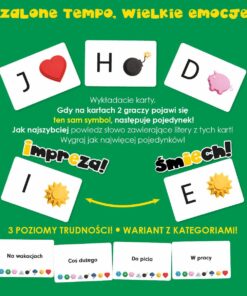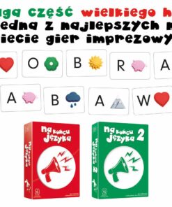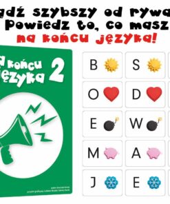 – W grze Na końcu języka 2 na kartach zamiast kategorii znajdują się litery. Podczas pojedynku należy jak najszybciej podać słowo zawierające litery z kart graczy!