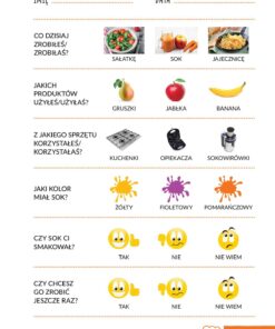 Obrazkowa książka kucharska to pozycja, jakiej jeszcze nie było na rynku wydawniczym! Całkowite zwizualizowanie przepisów jest odpowiedzią na potrzeby tych, którzy na co dzień myślą obrazami. Zaletą publikacji jest nie tylko rozpisanie czynności krok po kroku, ale także zaprezentowanie aktywności i produktów za pomocą zdjęć i symboli. Dodatkowo książka zawiera zwizualizowaną instrukcję obsługi.