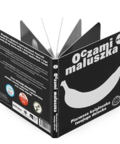 Pierwszy tom serii Oczami Maluszka. Książeczka dla niemowląt do 6 miesiąca życia. Zawiera ona czarne ilustracje tematycznie bliskie dziecku, na białym tle. Przedmioty, postacie i zwierzęta o prostym kształcie i formie stanowią świetną okazję do opowiadania dziecku o otaczającym świecie – to zaś rodzicom pomaga wzmocnić więź z dzieckiem. Książka wspomaga prawidłowy rozwój wzroku oraz zdolność kojarzenia u dziecka, wprowadza także malucha w świat książek już od najmłodszych lat. Książeczka jest doskonałym, oryginalnym prezentem dla niemowlaka.