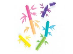 Zabawne mini flamastry przypominające wyglądem bambusowe kije. Flamastry można dowolnie ze sobą mieszać i łączyć tworząc żywe kompozycje kolorystyczne. W zestawie jest sześć intensywnych kolorów, które dają już sporo swobody podczas tworzenia kreatywnych prac. Mazaki mogą służyć do rysowania, kolorowania, pisania. Mają jeszcze jeden atut. Pachną owocami. Warto mieć je pod ręką w domu, w pracy czy w szkole niezależnie od tego ile ma się lat.