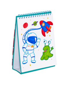 T-rex, brontozaur i inne dinozaury tworzą ciekawą okładkę wyróżniającego się designem szkicownika. Można rysować, a potem prezentować swoje prace za pomocą specjalnej podstawki – ten wyjątkowy szkicownik ma wbudowany własną, tekturową sztalugę! Kolorowe motywy dinozaurów podpowiadają nam, że właśnie tu rozpoczyna się kreatywna przygoda!