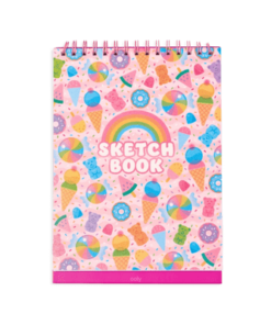 Super uroczy blok rysunkowy Sketch & Show ma wbudowaną podstawkę, więc po zakończeniu tworzenia grafiki możesz ją zaprezentować wszystkim domownikom! Ten szkicownik dla dzieci zawiera 45 perforowanych stron z białego, bezkwasowego papieru o gramaturze 120 g / m2 i wymiarach 20,3 x 25,4 cm. Opalizująca okładka cieszy oko zabawnymi tęczowymi cukierkami, lodami, owocowymi żelkami i innymi pysznościami, co sprawia, że ten ten blok jest wyjątkowo słodki!