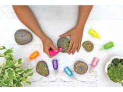 Oczywiście farbkami można również malować linie i wykorzystywać je do innych wzorów niż te powstające z kropek. Dzięki temu może powstać wyjątkowy, złożony rysunek na papierze bez względu na jego kolor, na szkle, drewnie, ceramice czy tkaninie. Opcji jest naprawdę wiele. Zwykły szklany wazon lub prosty kubek mogą zmienić się w mini dzieło sztuki. Farbkami można udekorować prawie wszystko, lub przygotować niebanalną kartę okolicznościową na zwykłym kartonie.