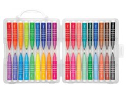 Praktyczne etui pozwala utrzymać porządek oraz ułatwia transport. Warto mieć je przy sobie podczas rodzinnych wojaży. Atutem jest też fakt iż tusz flamastrów jest zmywalny, więc jeśli dziecko przetestuje na sobie wenę twórczą, bez kłopotu usuniesz jego fantazję. Fajnym rozwiązaniem jest jedna skuwka łącząca 2 mini flamastry – można złożyć je tak, by uzyskać regularnej wielkości flamaster. To wspaniale ułatwi dzieciom tworzenie prawdziwych dzieł sztuki!
