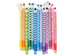 - papierowe oprawki odwijają się jak wstążeczki odsłaniając kredkę;