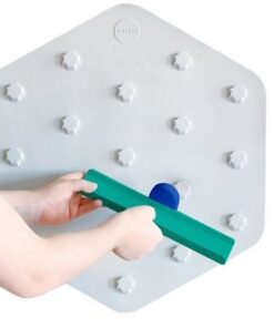 – Odklej ochronną warstwę naklejki i przyłóż zabawkę do ściany/drzwi. Mocno przyciśnij i wyrównaj;