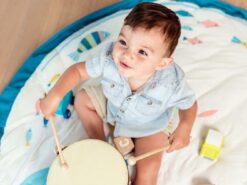 Dwustronna, miękka i funkcjonalna mata do zabawy i worek w jednym. Rozłóż na podłodze, pozwól uśmiechać się maluchowi do wesołej postaci i swobodnie bawić na dużej, super wygodnej powierzchni. Pamiętaj, aby zapiąć klapki zabezpieczające dostęp do liny. Po skończonej zabawie, wystarczy że odepniesz klapki, ściągniesz liny i plac zabaw jest już gotowy do przechowywania. Zawieś worek na wieszaku, wsuń pod łóżko, wrzuć do szafy lub ułóż designersko w zestawie z innymi workami w pokoju dziecka. Worki z kolekcji Soft posiadają odpinany, regulowany uchwyt, dzięki któremu z łatwością zarzucisz worek na ramię i zawiesisz na rączce od wózka. Tak oto mata Play&Go stała się mobilnym placem zabaw! Możesz tam zapakować nie tylko zabawki, ale również wiele innych, niezbędnych akcesoriów spacerowych – koc, dodatkowe ubranie, akcesoria do przewijania i całe mnóstwo innych gadżetów.