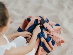 Idealne rozwiązanie na plażę! Spakujesz w niego zabawki i ręczniki, a potem bez trudu otrzepiesz z piasku. Świetnie sprawdzi się również na pikniku, w lesie, w parku i przydomowym ogródku. W takim worku łatwo schować klocki, samochodziki, pluszaki i inne skarby. Można go łatwo złożyć, rozłożyć i przenieść w inne miejsce. Po rozłożeniu worek w jednej chwili zmienia się w miejsce do zabawy dla dzieci. Worek w wersji Outdoor jest miękki i wodoodporny, co zapobiegnie przeciekaniu wody z plażowych zabawek w bagażniku samochodu czy też przemoczenia spodni w czasie zabawy na wilgotnej trawie. Na środku worka znajduje się mały otwór, przez który, zaraz po złożeniu worka wydostanie się nadmiar brudu, piasku i wody. Dodatkową cechą worka Play&Go w wersji Outdoor jest specjalny, regulowany pasek z zapięciem, dzięki któremu można go wygodnie zarzucić na ramię i przetransportować. Sznurek do składania worka Outdoor nie chowa się w rękawie, dzięki czemu, w czasie zabawy poza domem, w jego szczelinach nie zbierają się piasek, brud i ciekawskie mrówki.