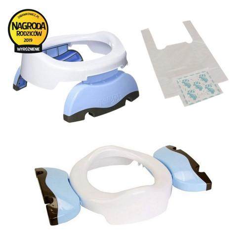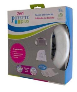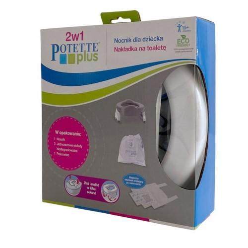 Wielokrotnie nagradzany produkt typu 2w1. Dzięki zastosowaniu prostych rozwiązań równie dobrze sprawdza się jako składany nocnik turystyczny co nakładka na toaletę, która pasuje na każdy rodzaj muszli. Jednorazowe, pochłaniające ciesz i przykre zapachy wkłady pozwalają na niekłopotliwe użycie nocnika poza domem. Potette Plus jest wręcz idealnym rozwiązaniem dla aktywnych, podróżujących rodzin. Zajmuje niewiele miejsca. Jest lekki, prosty w użyciu i higieniczny. W domu jednorazowe wkłady można zastąpić silikonową nakładką (do nabycia oddzielnie) zamieniając w ten sposób nocnik turystyczny w klasyczny nocnik, który łatwo utrzymać w czystości. Kolejnym etapem jest używanie Potette Plus jak nakładki na sedes, która ułatwia dziecku naukę samodzielnego korzystania z toalety.