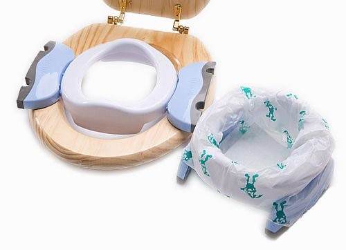 W zależności od sytuacji nasz nocniczek można wyposażyć w silikonowy wkład, wyraźnie ułatwiający jego utrzymanie w czystości, gdy stosujemy go w domu lub w jednorazowe, pochłaniające ciecz i przykre zapachy woreczki. Dzięki temu drugiemu rozwiązaniu nocnik stanie się idealnym rozwiązaniem turystycznym.