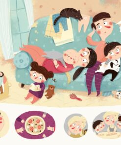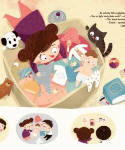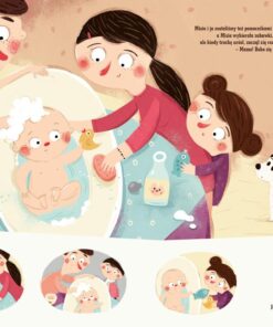 Pod każdą dużą ilustracją znajdują się dodatkowe obrazki mobilizujące do opisywania przeżyć bohaterów własnymi słowami, a także pytania skłaniające do rozmowy z rodzicem na temat szczególnie interesujący każdego malucha: własne przyjście na świat.