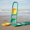 To prawdziwie wszechstronne narzędzie 4 w 1: może być łopatką, grabkami, sitkiem i lejkiem do wody. Można także przenosić na niej np. muszelki lub wykorzystywać w każdy, dowolny sposób, jaki podpowie dziecku wyobraźnia.