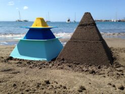 Koniec z noszeniem na plażę kilku wiaderek, klepaniem i obracaniem – te foremki wystarczy ustawić jedna na drugą, napełnić po brzegi, i piramida rodem ze starożytnego Egiptu gotowa! Przy ich użyciu zbudować można zresztą nie tylko kilkupoziomowe budowle, ale wszystko, co podpowie dziecku wyobraźnia.