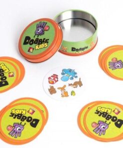 W instrukcji znajdziecie pięć różnych minigier, ta opisana powyżej jest najprostsza i najpopularniejsza. Czym “Dobble Kids” różni się od “Dobble”? Wszystkie symbole to zwierzęta, bardzo charakterystycznie narysowane, co pozwala dzieciom nie tylko szybko odnaleźć w myślach odpowiednie słowo, by nazwać zwierzę, ale też utrwala im nazewnictwo. Dlaczego musisz mieć tę grę? Żadna inna gra nie rozrusza towarzystwa tak jak “Dobble”. Żadna nie jest tak prosta i nie daje tyle zabawy w ciągu tych kilku minut! Rozgrywka jest bardzo szybka, emocjonująca, przy stole dużo się dzieje, każdy krzyczy starając się jakoś nazwać pasujące obrazki i być przy tym szybszym od innych graczy. Tylko “Dobble” tłumaczy się w minutę! Żadna inna gra nie jest tak mała, że można wziąć ją wszędzie i nie ma tak trwałego, metalowego pudełka, które wytrzyma wiele.